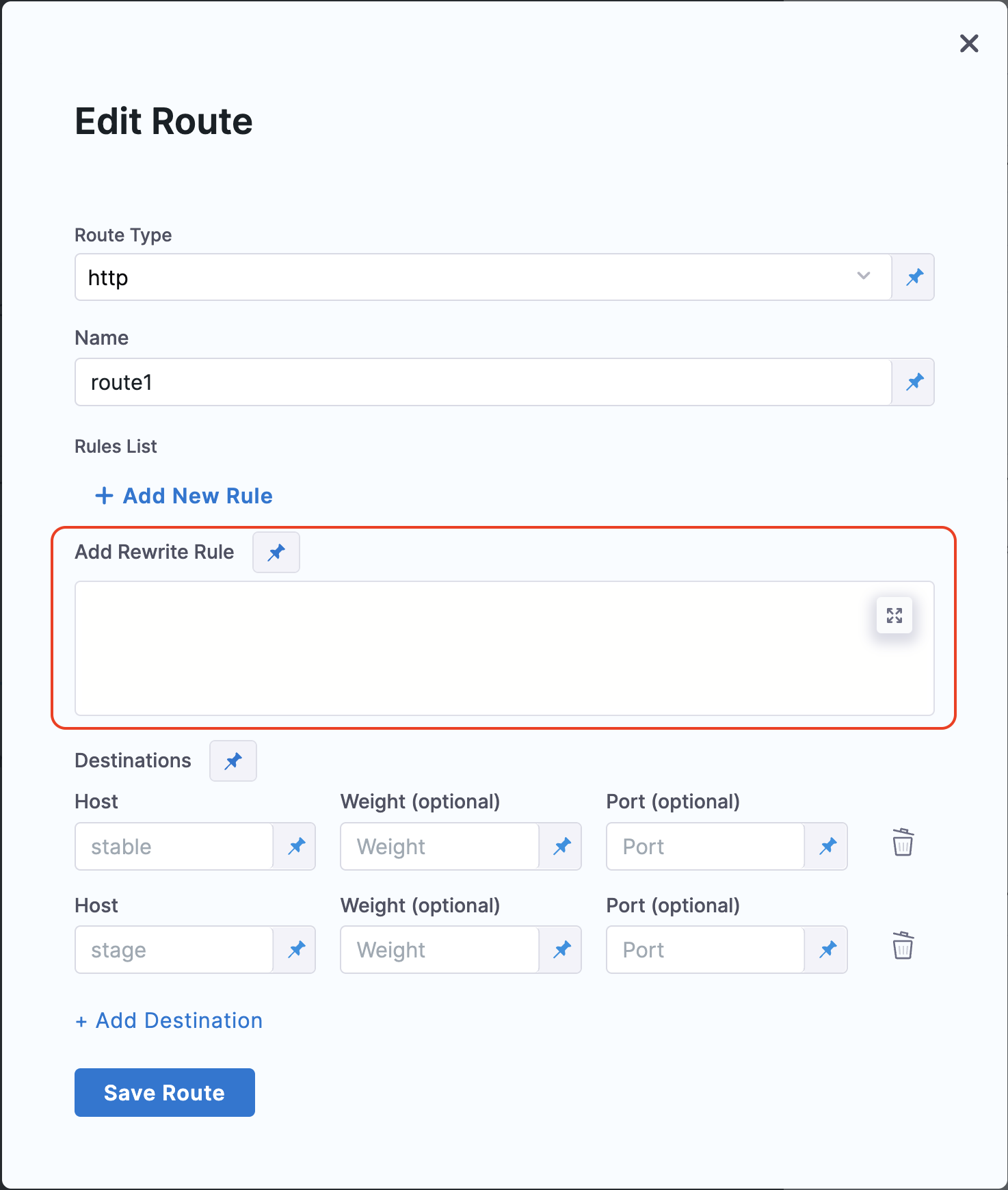 Route name: This will be used in generating kubernetes resources so the value should be kubernetes name compliant. This should also be unique within the pipeline workflow as it is used as an ID for updating purposes (described below).