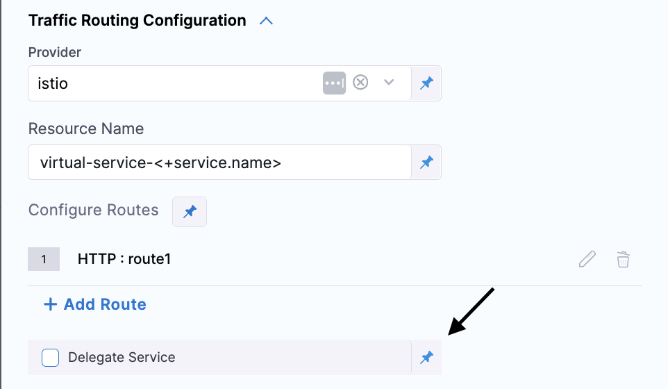 resource names. Which would effectively be replaced with the name of the stable and canary services, respectively.- Delegate Virtual Service Support