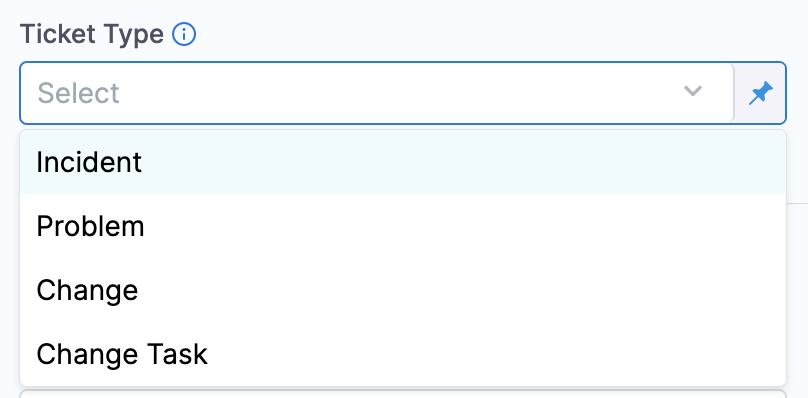 6. In Ticket Type, select a ServiceNow ticket type from the list.