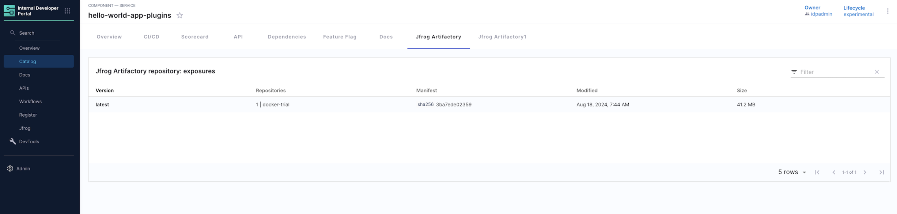 This plugin exports a UI tab that you can use as a new JFrog tab for a service or for any other layout page. The following configuration is set by default in Layout under Catalog Entities for Service and you do not need to change anything:
