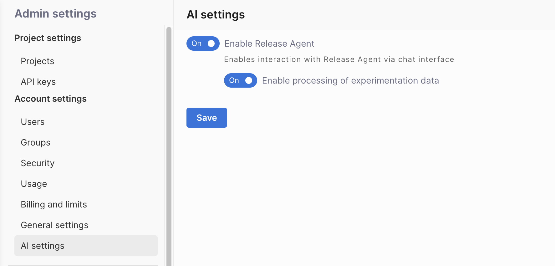- Select the Enable Release Agent toggle and Enable processing of experimentation data toggle to turn these features on or off for your team. When you enable processing of experimentation data, the data is protected by the privacy protections described below.