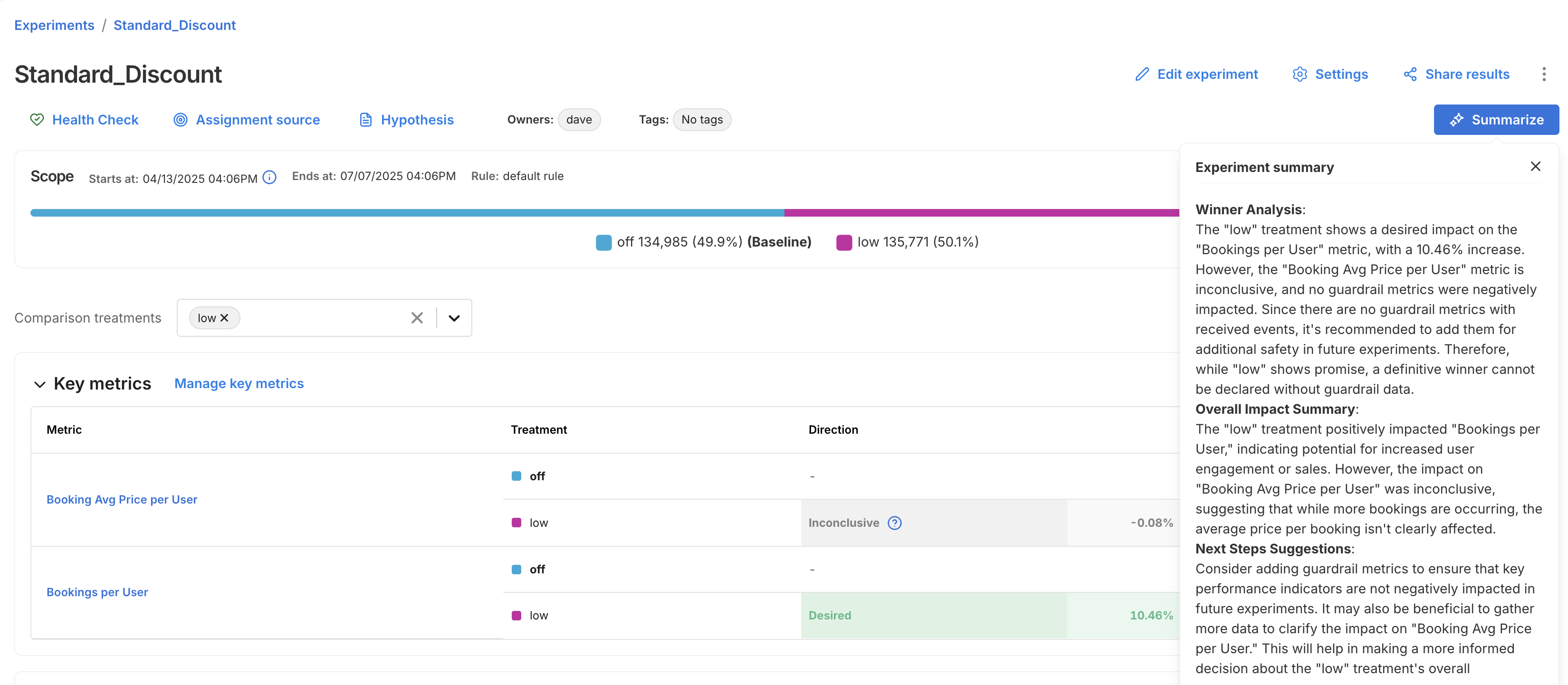 - Drill into a metric on an experiment's Metrics dashboard and click Summarize.