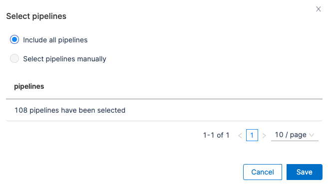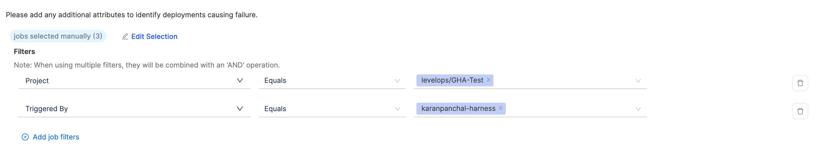 • Configure additional attributes to identify deployments that result in failure. By default, all pipelines are included, but you can customize the selection by manually specifying which pipelines should be included.