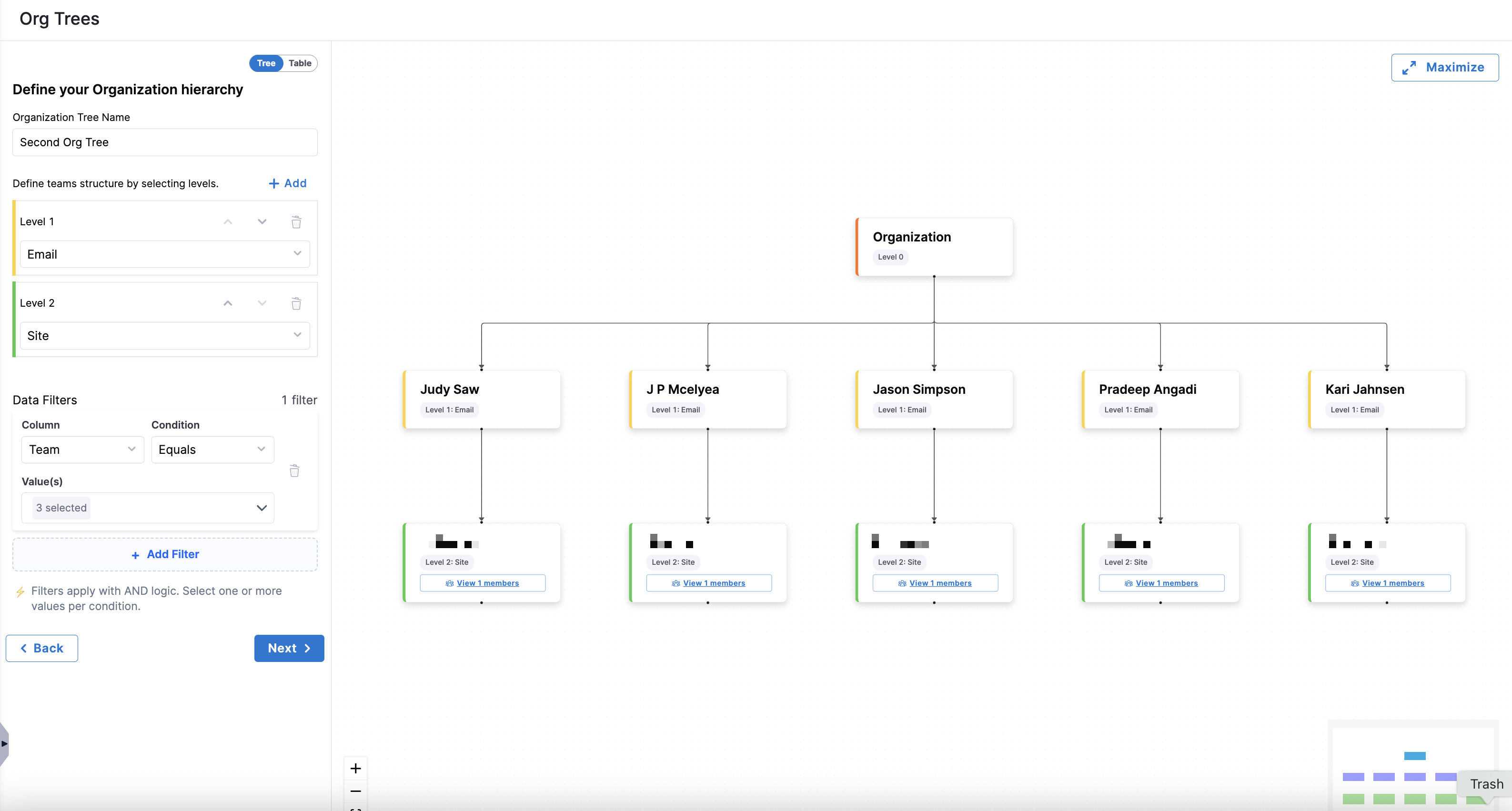 [New Enhancement] Multiple Org Trees, multi-level hierarchies, and data filters in SEI 2.0
